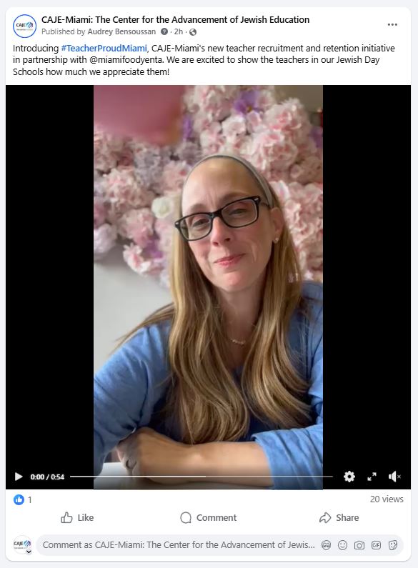 For more information about TeacherProudMiami and all other Day School Programs and Initiatives, please contact Audrey Maman Bensoussan at audreymaman@caje-miami.org.