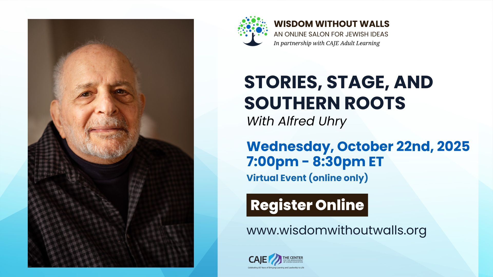 That is also why I am so excited about our next Wisdom Without Walls program. On Wednesday, October 22, we welcome Alfred Uhry, Pulitzer, Oscar, and Tony Award-winning playwright. Uhry’s work—Driving Miss Daisy, The Last Night of Ballyhoo, and others — explores memory, identity, family, and tradition.