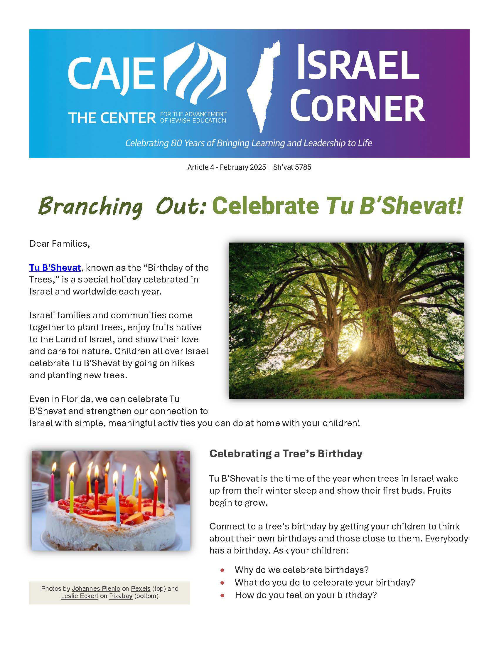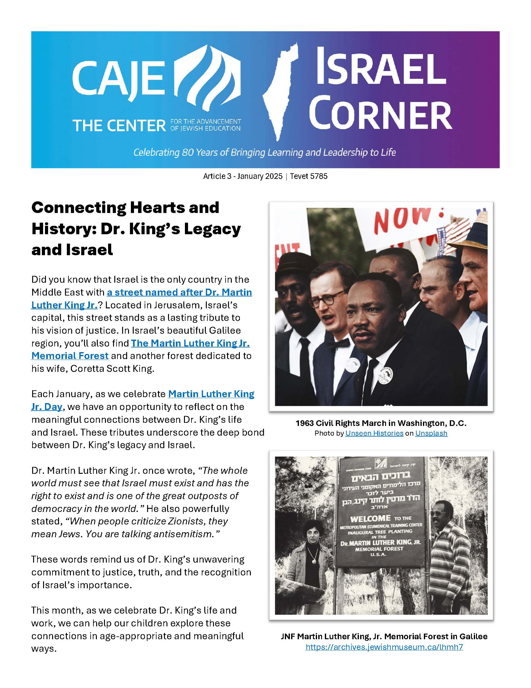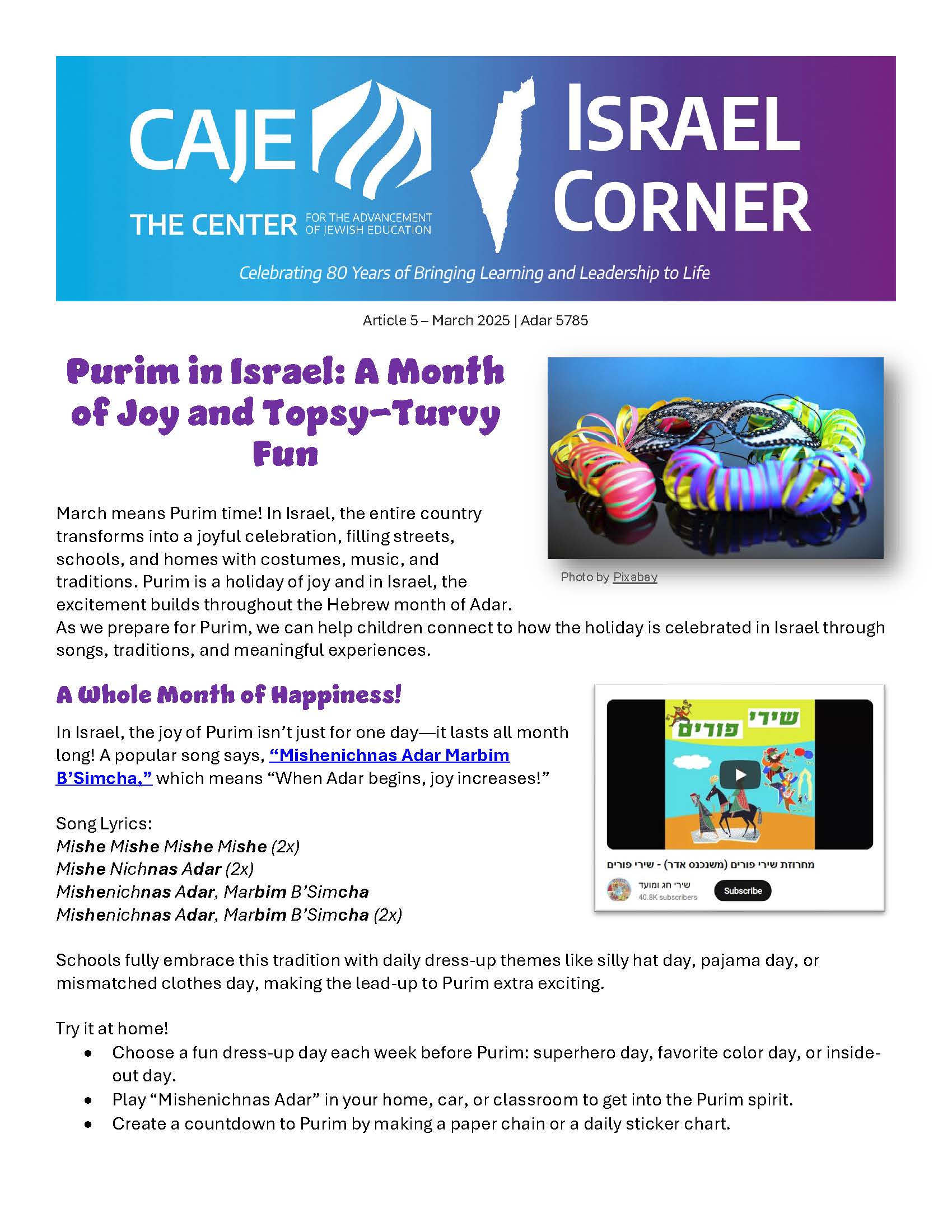 Each article includes reading selections, books, songs, and activities that resonate with our community's values. We believe that, together, we can cultivate a strong connection to Israel that will inspire and educate our children!